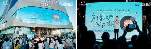 提前一周,项目外广场便出街巨型“歌词斑马线”预热,活动当晚,“汉阳之眼”大屏定帧「武汉音乐地图走进汉阳」主题海报,国家一级演员陆鸣到场,将现场氛围推向高潮,现场超500名顾客围观。