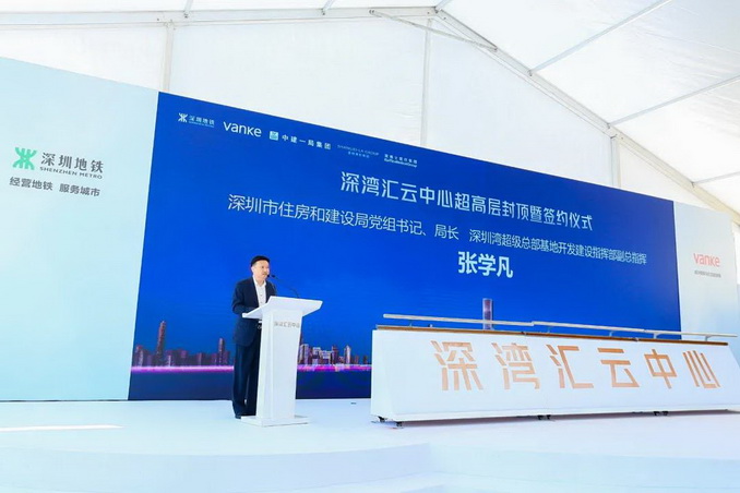 深圳市住房和建设局局长、党组书记、深圳湾超级总部基地开发建设指挥部副总指挥张学凡在致辞中表示,深圳湾超级总部基地是我市定位最高、分量最重、影响最大的重点片区之一,入驻的每一家企业都应该感到荣耀,参与开发建设的每个人都应该感到荣耀。作为代表深圳面向未来的城市新客厅,以打造全球城市“巅峰之作”,肩负起建设中国特色社会主义先行示范区和社会主义现代化强国城市范例样板的光荣使命为己任。希望参建各方以今天封顶仪式作为新起点,再接再厉、团结奋战,按照“巅峰之作”的目标要求,努力打造精品工程、样板工程、平安工程,为片区开发建设注入新的活力。