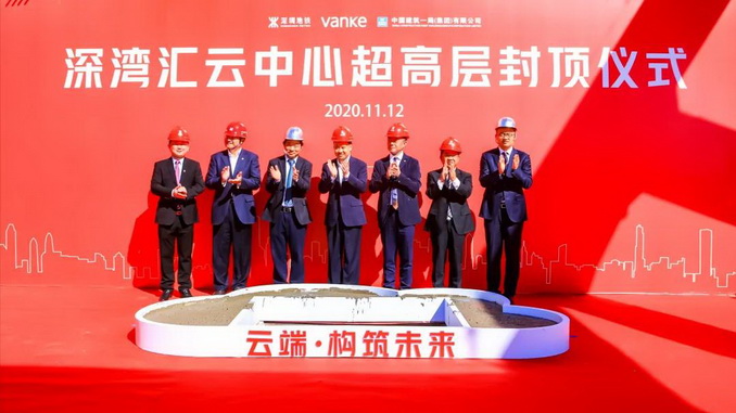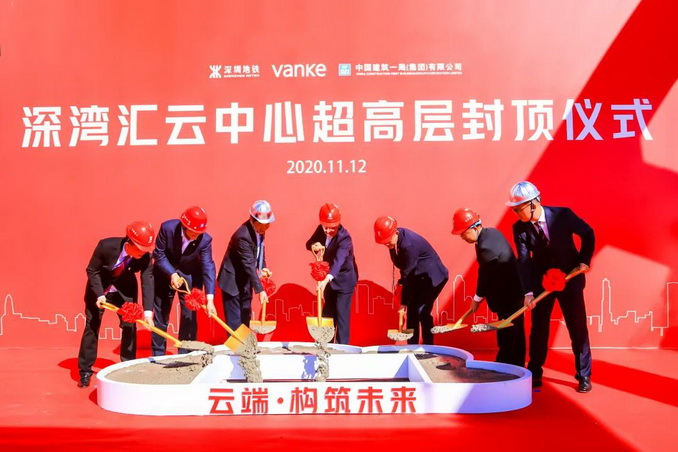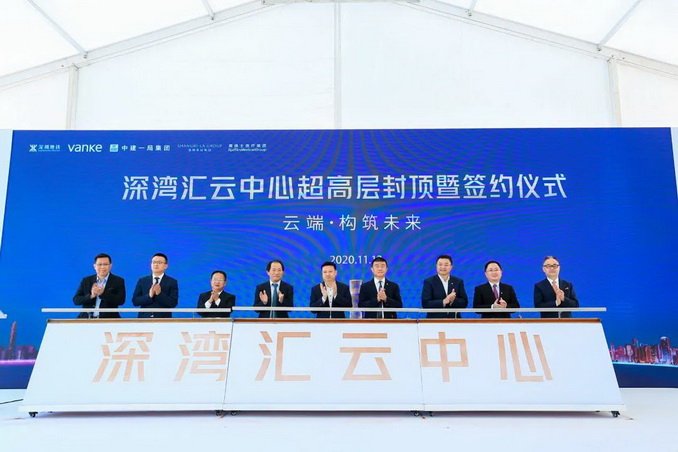11月12日,深圳深湾汇云中心项目超高层封顶暨签约仪式在南山区深圳湾超级总部基地项目现场举行,深圳市住房和建设局局长、党组书记张学凡,深圳地铁集团董事长辛杰,深圳地铁集团总经理唐绍杰,万科集团总裁、首席执行官祝九胜,中建一局董事、总经理、党委副书记张晓葵等出席活动,各方代表登顶358.7米的深湾汇云中心完成封顶仪式。作为深圳湾超级总部基地动工以来第一个实现结构封顶的项目,封顶标志着深湾汇云中心项目正式从开发建设转向招商运营,活动当天,香格里拉集团、莱佛士医疗集团还分别签署了入驻、合作协议。