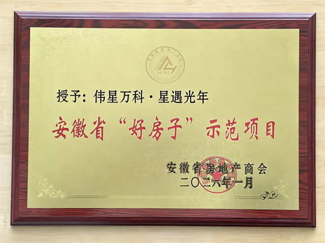 1月22日,在安徽省房地产商会主办的“聚焦好房子,迎新十五五”房地产形势报告会上,合肥高新区讯飞小镇板块的伟星万科·星遇光年项目被正式授予“安徽省‘好房子’示范项目”称号。该项目凭借其产品设计、社区营造与配套服务等方面的综合表现,成为全省住宅品质建设的标杆之一。